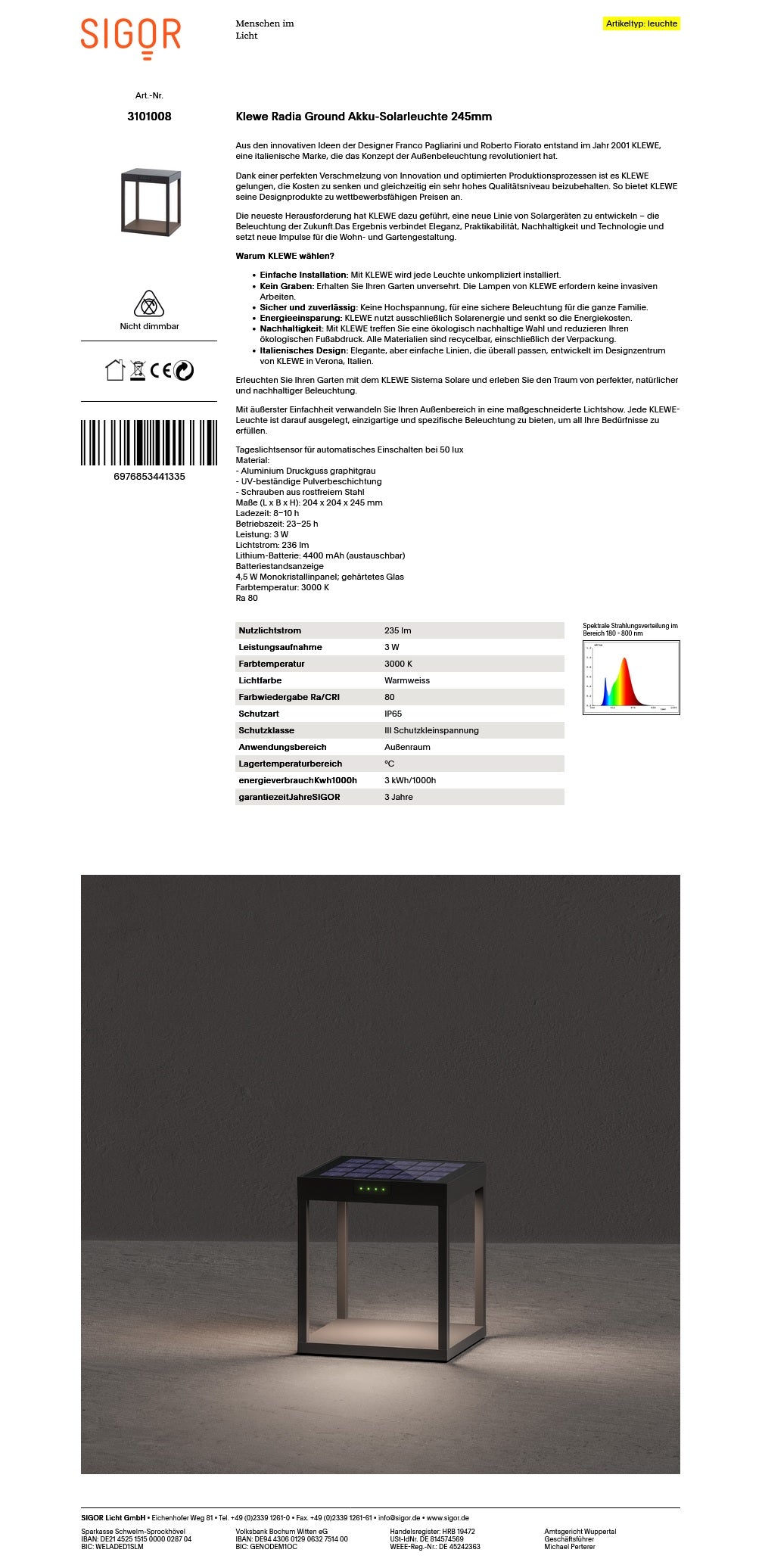 Need more information about the Sigor Klewe Radia Ground Solar Lamp?